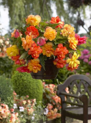 Begonie Golden Balcony je viseča gomoljna begonija z obilnim cvetenjem v toplih rumenih, oranžnih in rahlo rdečkastih odtenkih. Rastlina tvori dolge, rahlo povešene poganjke, zato je odlična izbira za balkonska korita, viseče košare in posode. Zaradi večbarvnih cvetov ustvari zelo živahen in dekorativen videz.