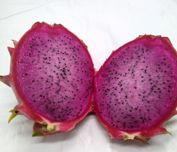 Die Früchte sind groß, oft fast 1 kg, mit rot-violette Schale Und dunkelpurpurrotes Fleisch. Der Geschmack ist extrem intensiv – sehr süß, erfrischend, mit einem ausgeprägten Geschmack Trauben und Litschis. Die Vielfalt reicht Brix ebenfalls über 21, was sie zu einer der süßesten Pitaya-Sorten macht. Die Konsistenz des Fruchtfleisches ist glatt, weich, saftig, mit relativ wenigen Kernen, was das Gefühl von cremigem Genuss verstärkt.