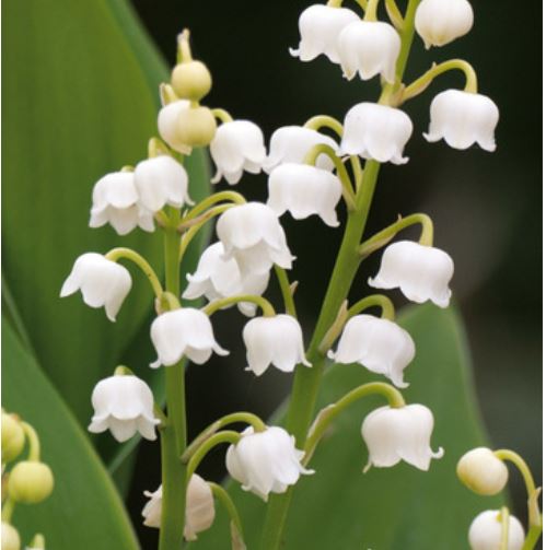 Lily of the valley Convallaria majalis White is a popular spring perennial with delicate white bell-shaped flowers and a characteristic pleasant scent. The plant forms dense mats of green leaves and is very suitable for planting under trees, in shade beds or natural gardens.